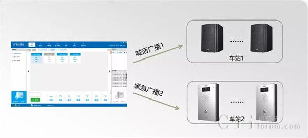 站台:利用求助对讲终端,播放列车到站/出站响铃、告警语音、安全提示等。