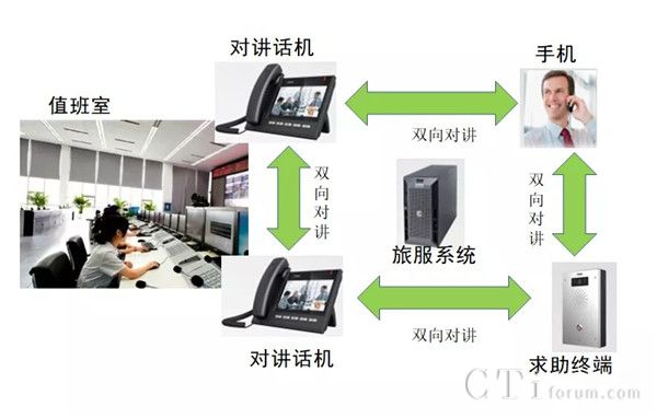 中心机房部署模拟/数字语音网关,对外对接运营商外线,对内对接旅客服务系统,用于外呼或者拨打紧急报警电话使用;