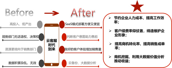 云产品的一个核心理念就是通过不断提高云的处理能力,进而减少用户终端的处理负担,使用户终端简化成一个单纯的输入输出设备,并能按需享受云的强大计算处理能力。虚拟化采用了各层次(中继线、网关、ACD、IVR、录音、座席)的虚拟化,是呼叫中心逻辑化,不依赖具体的硬件部署。由于软、硬件都通过虚拟化技术以服务形式来提供,可使得企业在空间及时间上都享有很大的弹性,企业可按运营的实际情况,随时可以根据需求增、减呼叫中心资源,达到节约成本的目的。