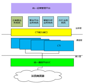 接入层主要负责通信资源的统一接入,包括各个线路资源平台的接入、自有中继资源的接入、计费的管理、平台的接入等。