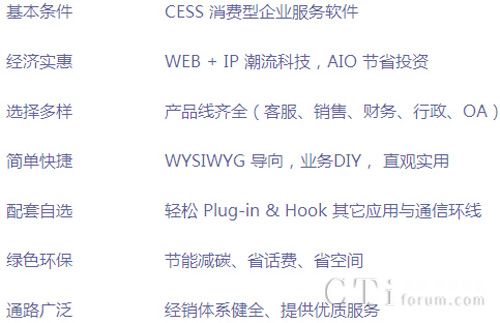 声音和影像是最有力的沟通媒介。网络商务虽然行之有年,却无法突破实时影音沟通障碍,经营者也常因此错失销售良机。赞云EZPhone打通Web to IP影音通信任督二脉,为企业注入广大互联网用户的心声。电子服务部门接受的不再是无声的请求,而是在线,热切,激动的期盼,实在的声音。它轻薄短小却威力无穷,以Click-to-Call一点即通方式,让CESS概念随着公司的触角延伸到全世界的范围。网络用户不必下载插件,不用打开防火墙,不必付话费,可即刻点击网络电话进行通话;此外EZPhone还可以接通传统电话与IP电话,为企业节省庞大的话费。
