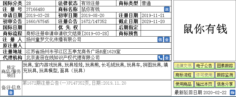随着2020年的到来,“鼠”这一字成为了注册商标的首选之字。