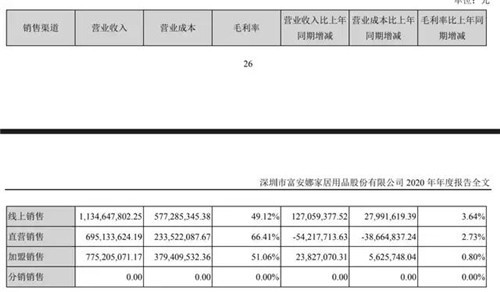 增收不赠利的原因或许是电商渠道的成本有所提升,以及同行的竞争。富安娜在往期年报中就曾表示,线上渠道平台流量红利消失,成本高,价格战越来越激烈。2020年,富安娜线上销售营业成本高达5.77亿元。