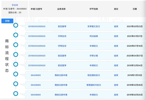 澎湃新闻(www.thepaper.cn)记者查询中国商标网发现,“李佳琦”该商标的注册过程一波三折。早在2019年2月就进行了第一次注册,多次被驳回,也多次进行评审。