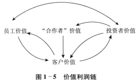 Duncan等认为,品牌资产是由关系利益人(除顾客以外,品牌关系主体还包括员工、投资者、供应商、经销渠道、媒体、政府官员等)对品牌的支持度累积起来的结果,在此基础上提出品牌资产方程式,即“沟通一品牌关系一品牌支持度=品牌资产”。Davidson(2)在对美英两国125个公司和非营利性组织的136位领导者进行访谈的基础上,提出承诺型组织的组成规则,即“忠诚的客户+高度激发的员工=满意的出资者”。Heskett等提出了“价值利润链”的思想(见图1-5),并通过实证研究发现:员工价值会带来满意、忠诚,还有高生产率,高生产率会产生出客户价值、满意、忠诚、信任和承诺;满意的、忠诚的、信任的和坚定的客户是公司成长和获利的主要动力,也是投资者价值的重要决定性因素;最后,成长和获利的果实被重新投资,为合作者(供应商、社团和其他)、员工、客户和投资者创造新的价值。Kotler提出了“持续营销模型”,并认为:管理者需要识别、获取和保留适当的顾客、员工和股东群体,为了分别在商品市场、人力资源市场和资本市场中获取保留适当的顾客、员工和股东,管理者必须为这三个主要利益群体创造同等、卓越的价值。Kaplan等通过案例研究方法提出了“平衡计分卡框架”,包括财务、客户、业务流程、学习与成长四个层面及其目标体系,四个层面目标之间应通过因果关系来连接。