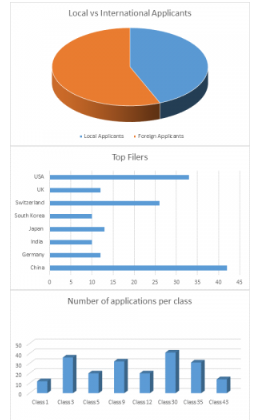 在埃塞俄比亚《官方公报》的最后三期(2019年6月至2019年8月)上共发布了407份申请书。几乎60%的申请是由外国所有人提出的,其中多数是中国,美国和瑞士。在此期间,第3、30和35类的申请量排名最高。