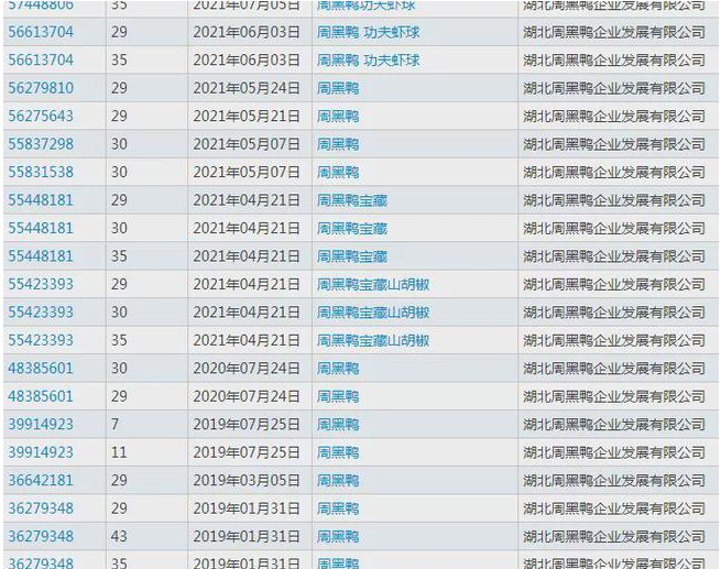 众所周知,周黑鸭公司是“周黑鸭”系列商标的所有人。该公司早在2005年就申请注册商标,由于周黑鸭及周黑鸭相关的商标都是全行业注册保护,因此在湖北已经具有很高的知名度。
