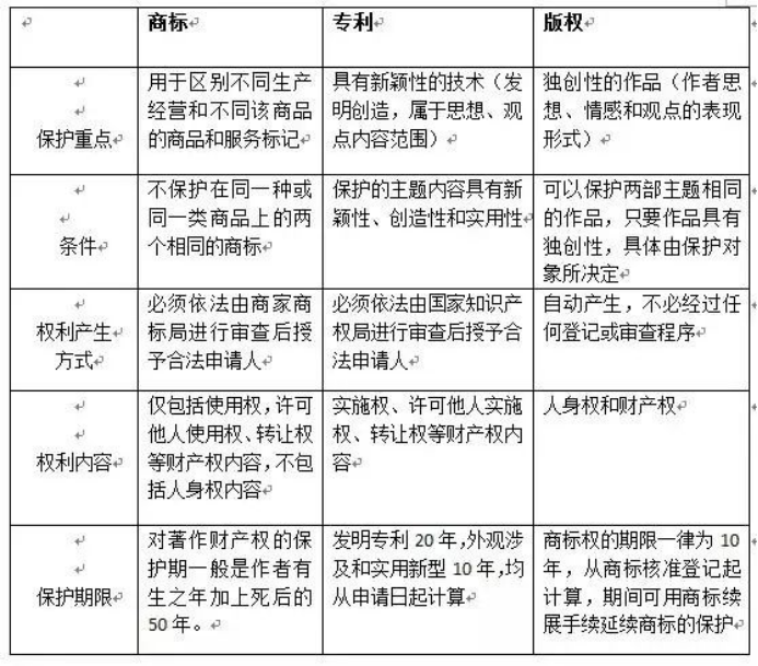 知识产权包含:商标、专利、版权,那么他们三者之间到底是怎样的定义,区别又是什么呢?下面由带路网小编为您一一道来。