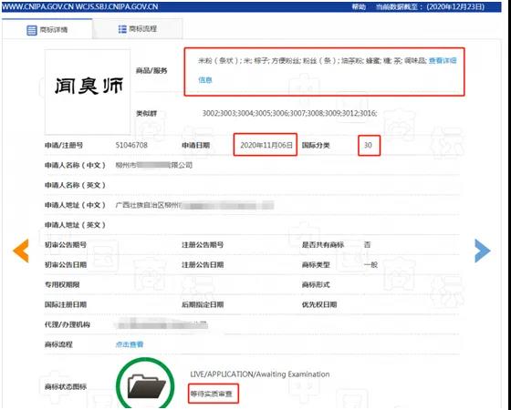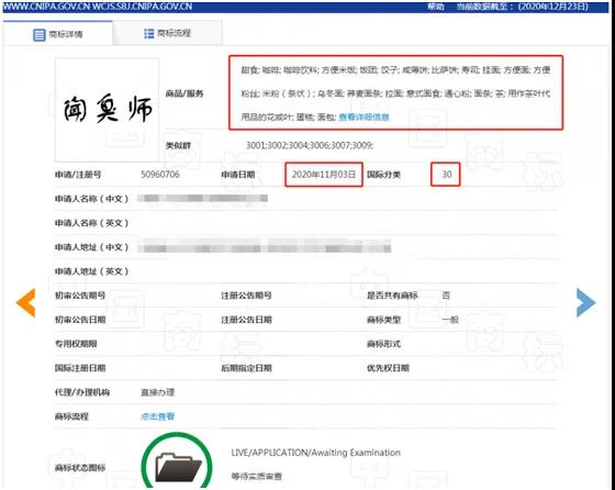 湖南某信息科技公司在2020年11月3日就抢先注册了第50960706号“闻臭师”商标,指定使用在甜食、咖啡等第30类上。