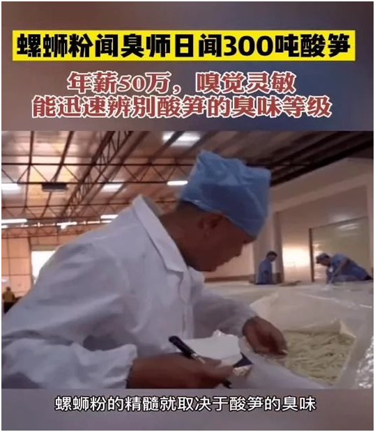 对于喜欢螺蛳粉的人来说,这款美食背后的调味师更加重要,而这也已经成为了高薪职业。近日,“螺蛳粉闻臭师年入百万”引发热议,而专业闻臭师的李永国,每天工作都是观察笋味,一闻就知道腌制时间,有没有放添加剂。曾经因为身上有酸笋的味道而被人怀疑,觉得“做这行有点儿尴尬”。但是他并没有放弃,今年的收入可达百万。