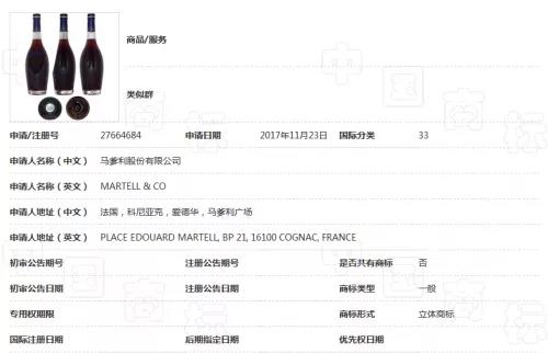 2019年11月,商评委认定该商标违反《商标法》第11条,即仅有本商品的通用名称、图形、型号的,或其他缺乏显著特征的标志不得作为商标注册。由此,驳回了马爹利的商标注册申请。