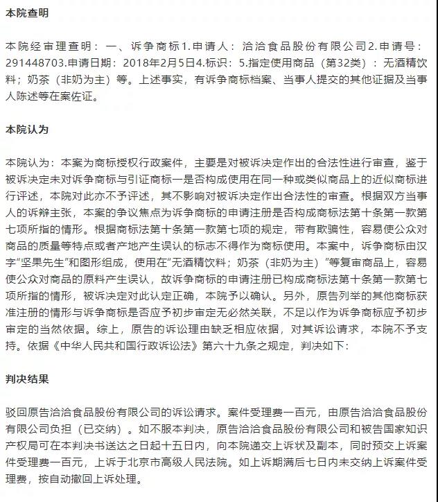 在大数据时代,买车不能不上车牌,买房不能不要房产证,生孩子不能没有户口,同理,想大品牌不能少了商标注册证。近日,据北京法院审判信息网消息,洽洽食品此前申请注册“坚果先生”相关商标复审因违反商标法第十条第一款第七项的规定——带有欺骗性,容易使公众对商品的质量等特点或者产地产生误认的标志不得作为商标使用。