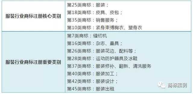 服装行业注册商标必须注册的是25类商标,但鉴于发展需求还可以根据自身需要,注册第09类防护服相关商标,第10类的紧身束缚衣、塑身衣等商标,第18类宠物服装商标,第26类花边,饰品等不属别类的服饰品,第42类服装设计服务,第45类提供服装出租业务的商标,当然万能商标中的第35类商标也必须注册因为以现在形势而言,电子商务不管是主要的渠道还是辅助性销售渠道,都是需要的。
