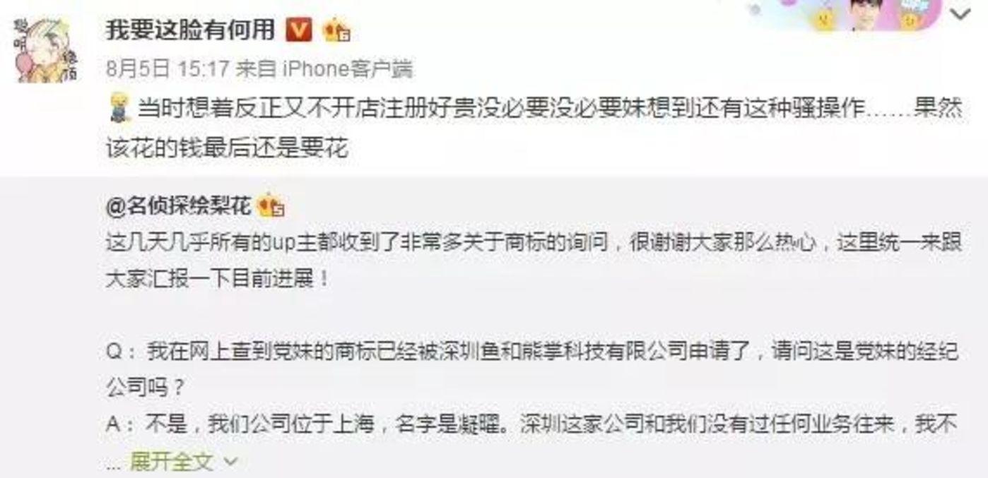 即便有UP主有这样的意识,由于商标注册前还需注册个体工商户进行挂靠,一些草根UP主也无从下手。此次抢注事件后,被抢注了商标的B站UP主“机智的党妹”便发微博称:“当时想着反正又不开店注册,(商标注册)好贵,没必要没必要,没想到还要这种骚操作……果然该花的钱还得花。”
