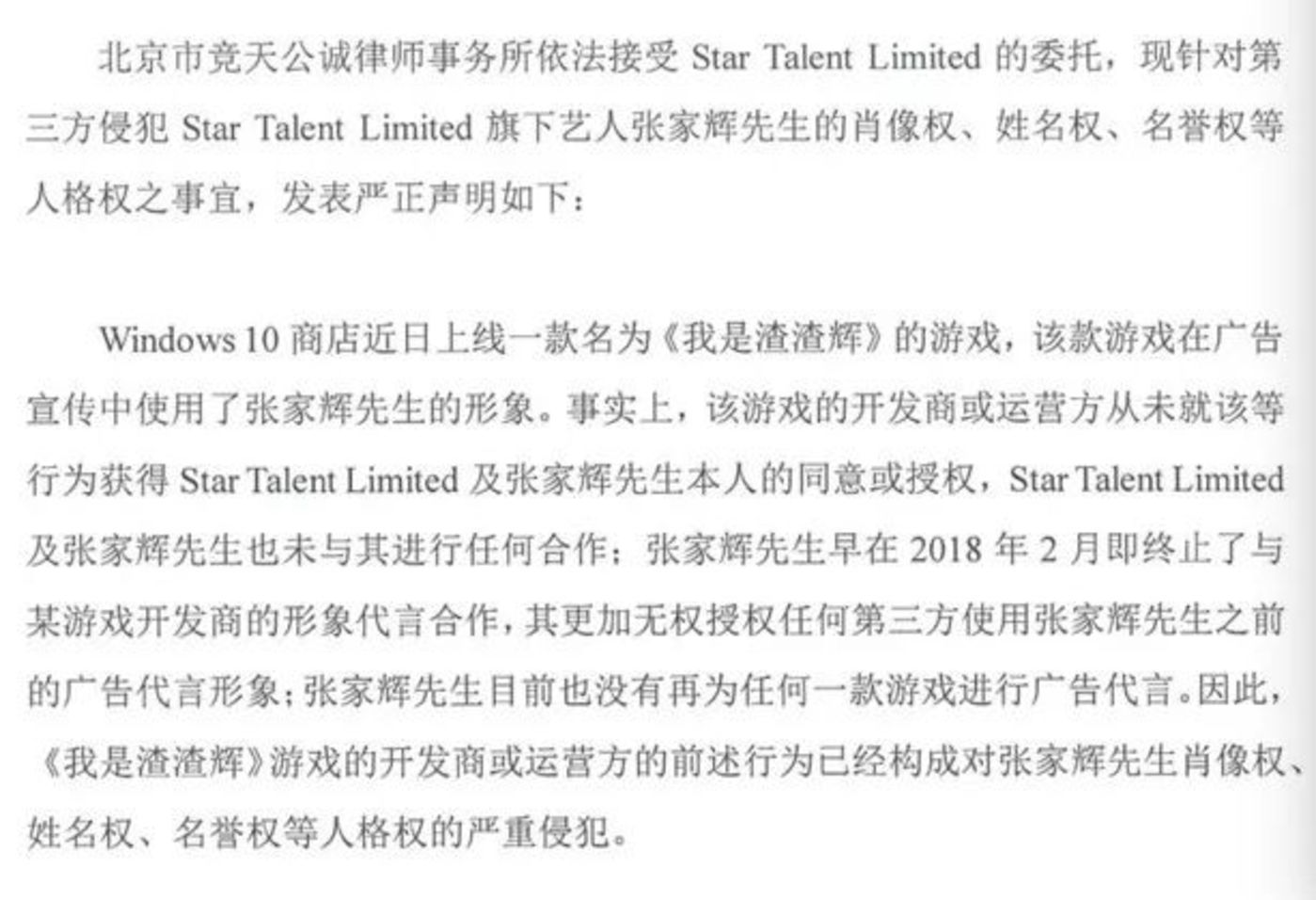 虽然张家辉方面对此并未给出回应,但网友普遍相信该注册人正是演员张家辉本人。而张家辉注册这些商标的目的,或许并非是为了赚钱、牟利,而是希望能够防患于未然。毕竟2018年时,就有平台推出过一款名为《我是渣渣辉》的游戏,直到张家辉工作室介入、发布谴责声明,侵权游戏才下架。