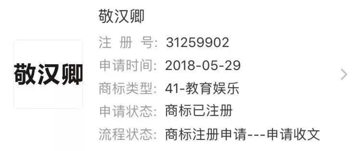 上个月,拥有近600万粉丝的B站大V敬汉卿发布视频表示,自己的姓名已经被某家公司抢注成了商标,而自己还收到了该公司的信函,要求其改名。随即,有B站网友表示,目前B站粉丝数前一百名的UP主中,有27人的ID商标疑似被抢注,包括“翔翔大作战”、“逍遥散人”等。