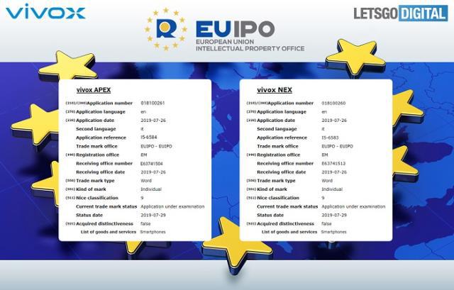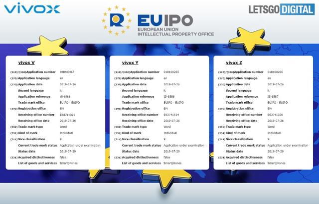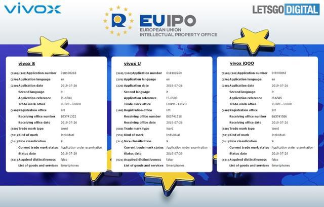 荷兰科技博客 LetsGoDigital 爆料称,Vivo 刚刚向欧盟知识产权局(EUIPO)提交了多份 Vivox 系列商标申请,并且把 APEX、NEX、S、U、V、Y、Z 和 IQOO 都带全了。 这份申请由意大利 GLP SRL 事务所代为提交,今年早些时候,同一机构还为 Vivo 代理了 V、X 和 Y 系列新机的商标申请工作。新注册商标的类别为第 9 类,其中涵盖了手机和智能手机等设备。