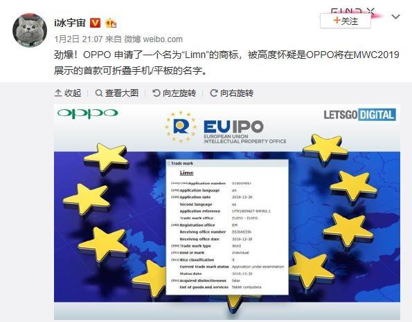 就在近日,有网友爆料,OPPO 申请了一个名为“Limn”的商标,极有可能是OPPO首款可折叠手机/平板的名字。更重要的是,在这个节骨眼上亮相的全新系列,也与之前的爆料中所说的OPPO将在MWC2019上为我们展示其首款折叠屏手机的说法不谋而合。
