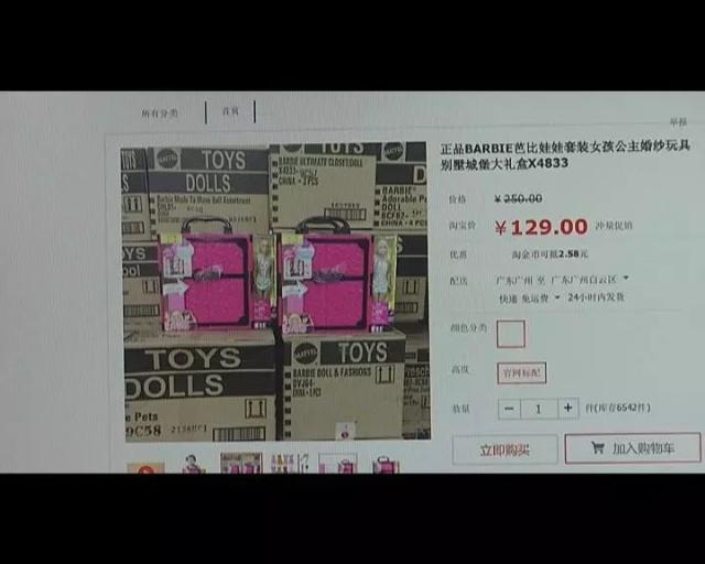 揭阳产业园公安分局刑侦大队民警 刘范楷:他们公司在淘宝网店销售的芭比娃娃x4833型号的产品,销售额大幅度下降,他们的工作人员通过在网上搜索就发现了淘宝网店上一个叫“长江一号舰旗店”的,在卖他们芭比娃娃的产品。