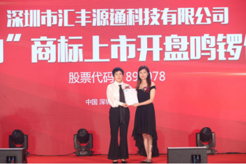 上市仪式上,深圳汇丰源通科技有限公司总经理马淑云致欢迎辞,并宣布“亿购”商标上市开盘敲锣仪式正式开始。她在致辞中说,在香港国际知识产权交易中心上市开盘的“亿购”商标,将作为公司的无形资产,在资本市场开始交易;公司在移动通讯领域、智能家居领域和健康领域将会不断地扩展,将以高产能、高受益回馈投资人。