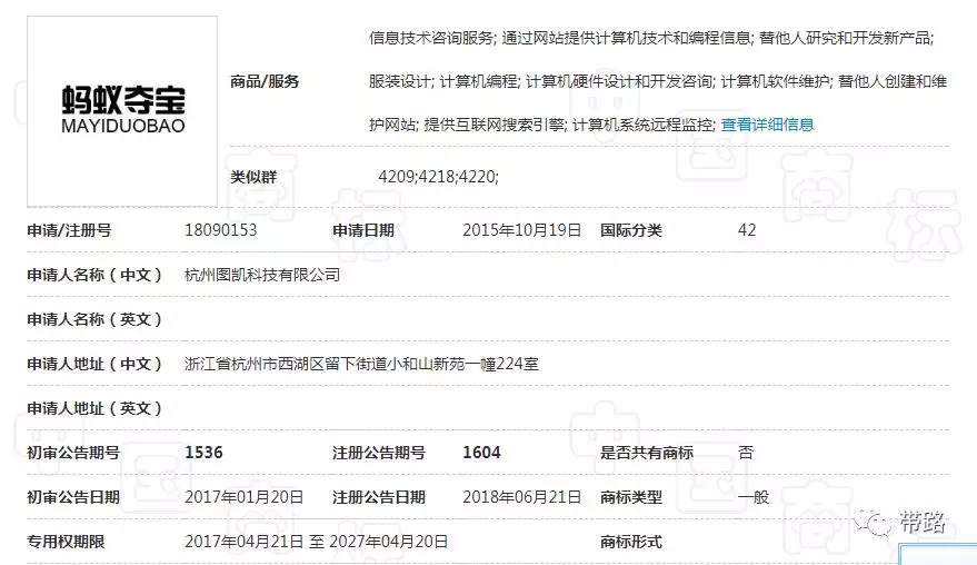 申请人复审的主要理由:商标局驳回时引证了第16478870号、第18090153号商标(以下分别称引证商标一、二)。申请人已对引证商标一、二提起异议申请,请求待两引证商标的权利状态确定后再审理本案。申请商标与两引证商标未构成近似商标。申请人在相关商品及服务上申请注册了众多包含“蚂蚁”的商标。其中申请人在第42类服务上的包含“蚂蚁”商标已在类似服务上与引证商标一、二实现了共存。申请商标经宣传使用已与申请人建立稳定的对应关系。综上,申请商标应予以初步审定。