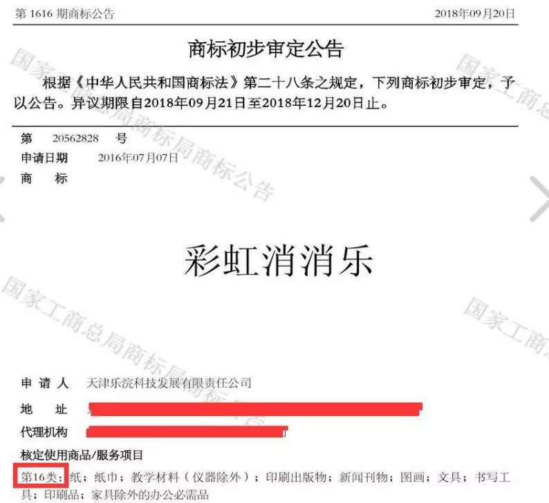 这么一个全民都喜爱的游戏,怎么可能不进行注册商标呢?小知查询到,关于“开心消消乐”的正牌公司“天津乐浣科技发展有限责任公司”申请了以“消消乐”首字的商标,包括“消消乐萌萌团”共164件,“开心消消乐”申请了46件,9月20日的商标初审公告中,“彩虹消消乐”已经初审公告,那么,消消乐注册成功了,彩虹消消乐也可以申请?