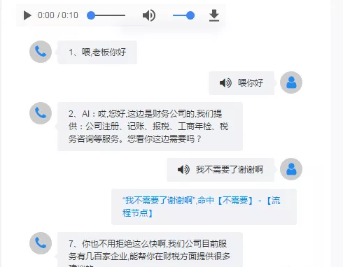 把常见的客户问题设置成知识库,电话机器人在听到相似问题时,即可快速利用知识库内容进行应答。可以说,知识库越丰富,电话机器人能解决的问题也就更多,客户的体验自然会更好,相应的,电话机器人的效果也就更好。